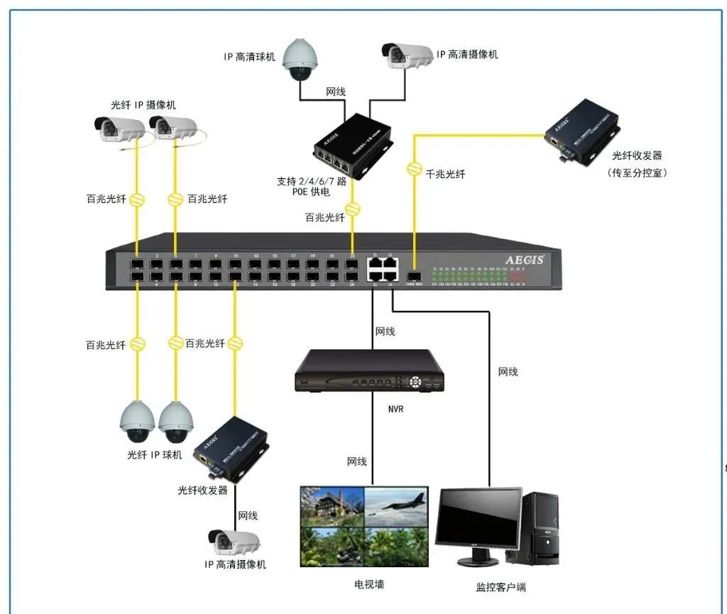 三、光纖架構(gòu):網(wǎng)絡(luò)攝像機+光纖+收發(fā)器