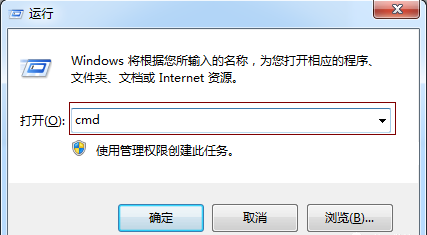 在電腦鍵盤上按鍵 win+r 彈出運行提示框,輸入cmd,如下圖