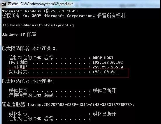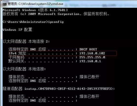 ipconfig:查看電腦IP地址